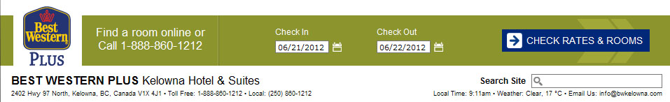 Best Western Kelowna | 2402 Hwy 97 North, Kelowna, BC, | 888-860-1212 | Local: (250) 860-1212